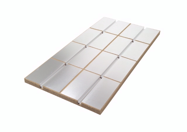 Topné prvky systému se skládají z ekologických dřevěných vláken. Na horní straně vlepený tepelně vodivý hliníkový plech. Rozteč je 250 mm.