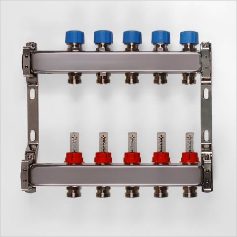 Rozdělovač ECOtherm včetně průtokoměrů, 1" kulových kohoutů. napouštěcích a odvzdušňovacích ventilů